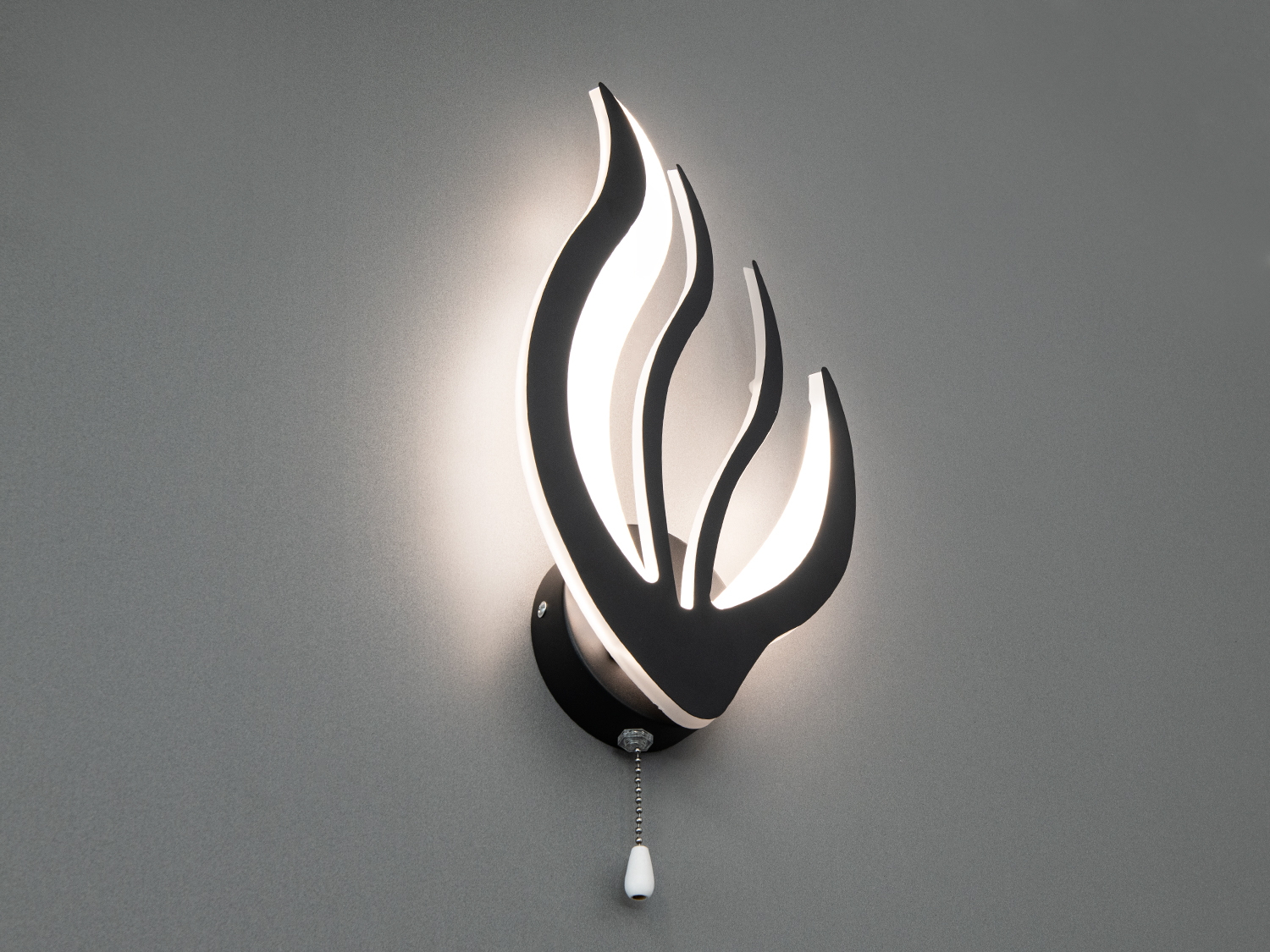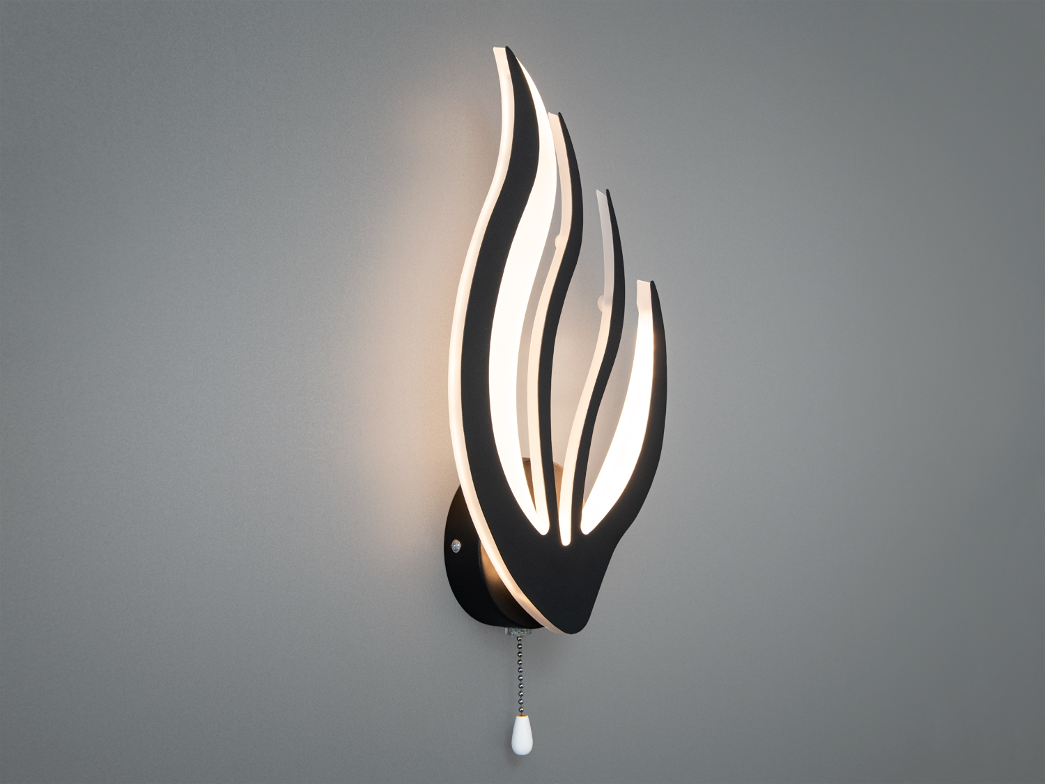 Бра оснащено ланцюжком‑вимикачем, що дозволяє легко регулювати світло. Поєднання трьох колірних температур — теплої, нейтральної та холодної — дозволяє налаштувати освітлення під будь-який настрій і ситуацію.