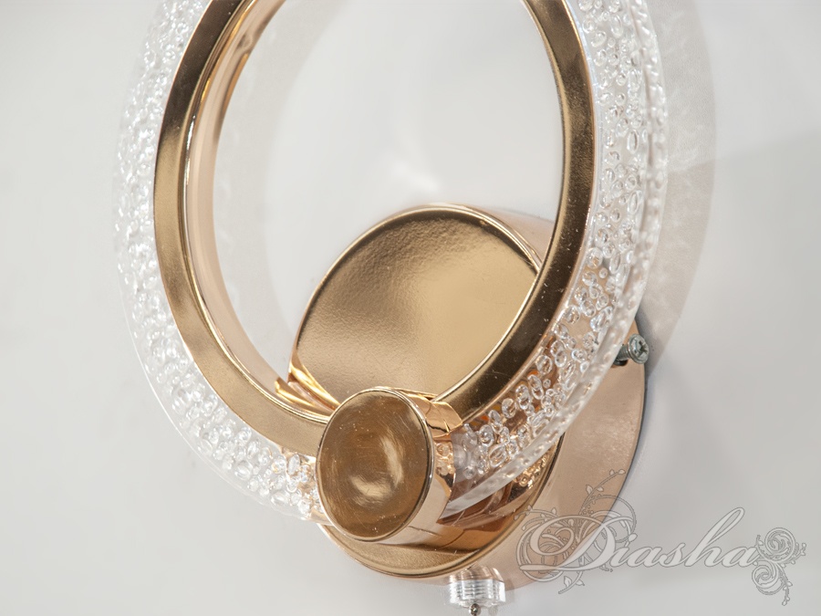 Корпус бра виготовлений з міцного металу, а плафон – з акрилу, що забезпечує рівномірне м’яке освітлення та довговічність конструкції. Золотисте покриття підкреслює текстуру стін та додає теплий відтінок у ваш інтер’єр.
