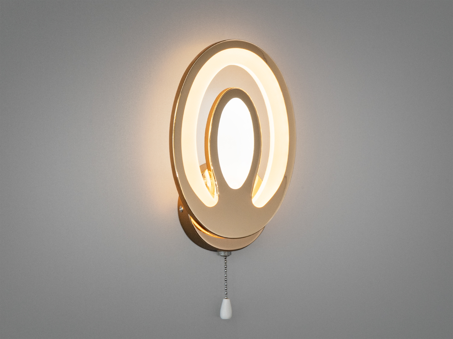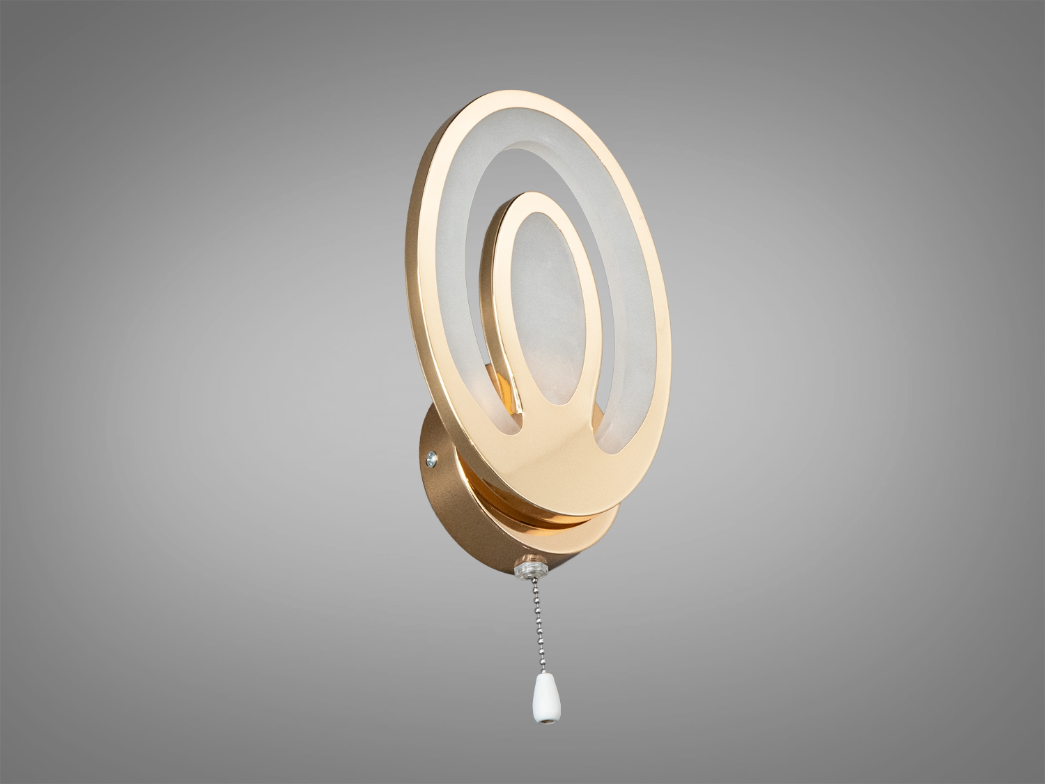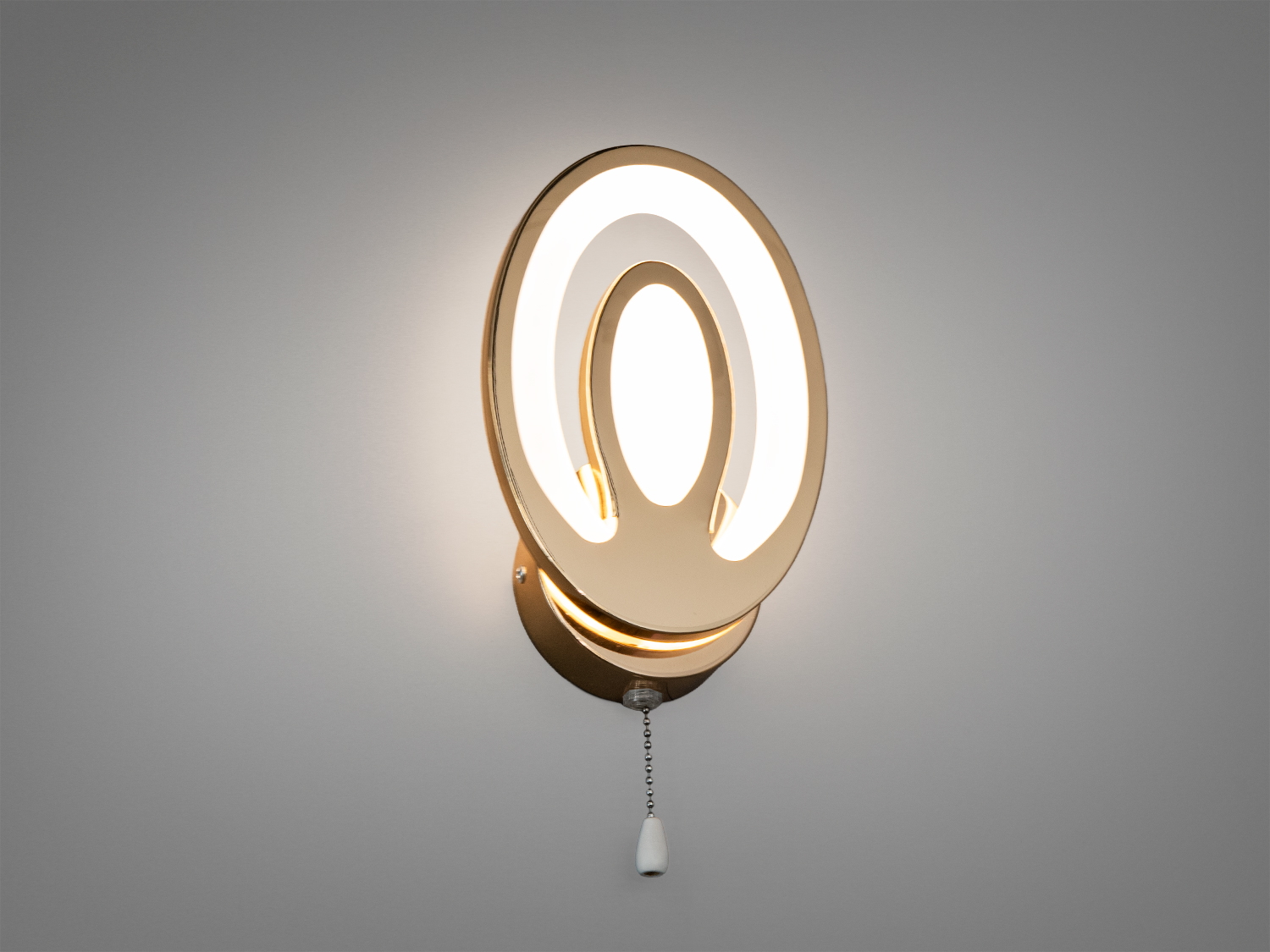 Корпус світильника виконаний з металу з міцним золотим покриттям, що надає виробу сучасний та елегантний вигляд. Його овальна форма з плавними лініями гармонійно вписується у сучасні інтер'єри.