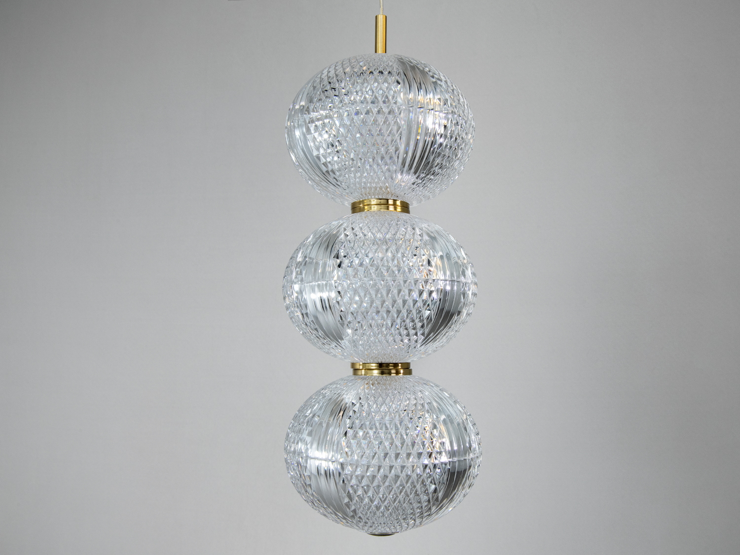 Світлодіодний підвіс золото 9W — це сучасне рішення для акцентного освітлення, ідеально підходить для вітальні, спальні або кафе. Конструкція з трьома прозорими акриловими модулями, що нагадують скло, забезпечує м'яке та рівномірне розподілення світла, що створює затишну атмосферу в приміщенні.