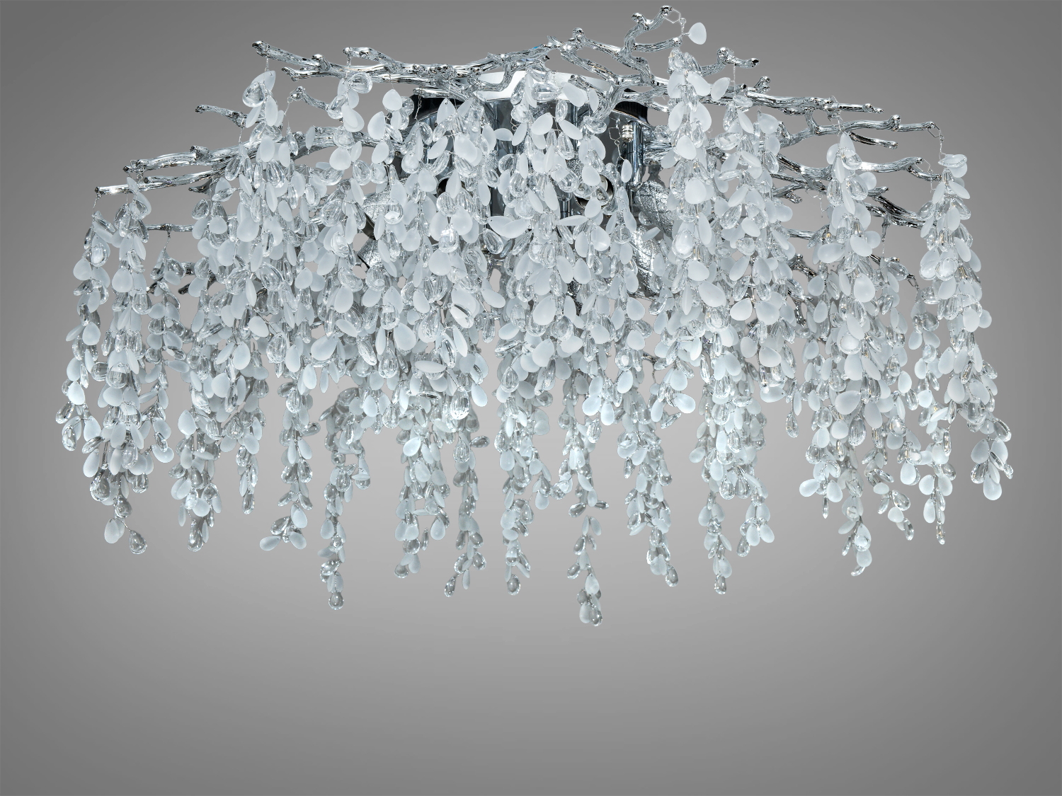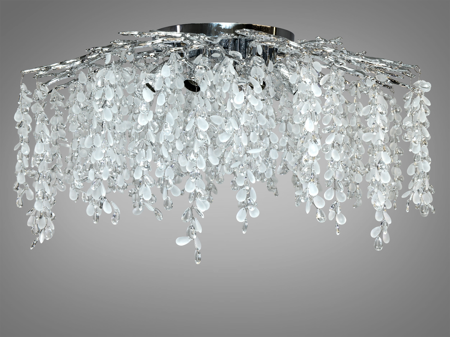 Кришталева стельова люстра Diasha Гліцинія — це вишукане рішення для вашого інтер'єру. Каскад кришталевих підвісів створює ефект водоспаду світла, надаючи кімнаті унікальної атмосфери. Хромований каркас відбиває світло, підсилюючи гру прозорих і матових елементів.