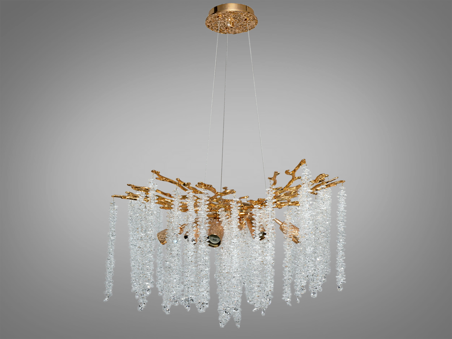 Ця модель підходить для віталень, їдалень або спалень, додаючи інтер’єру елегантності та витонченості. Матеріали з металу і кришталю забезпечують довговічність і розкішний вигляд.