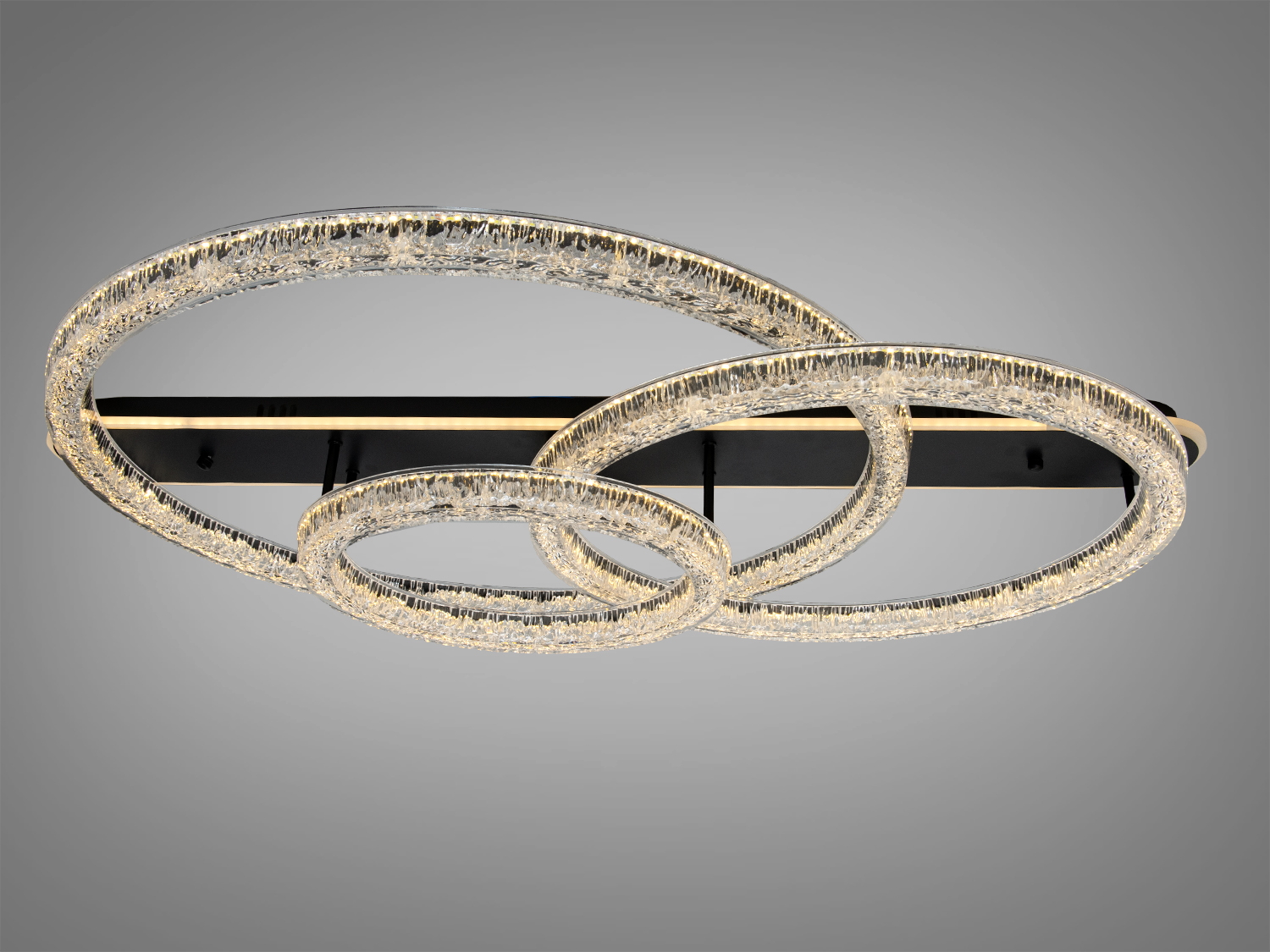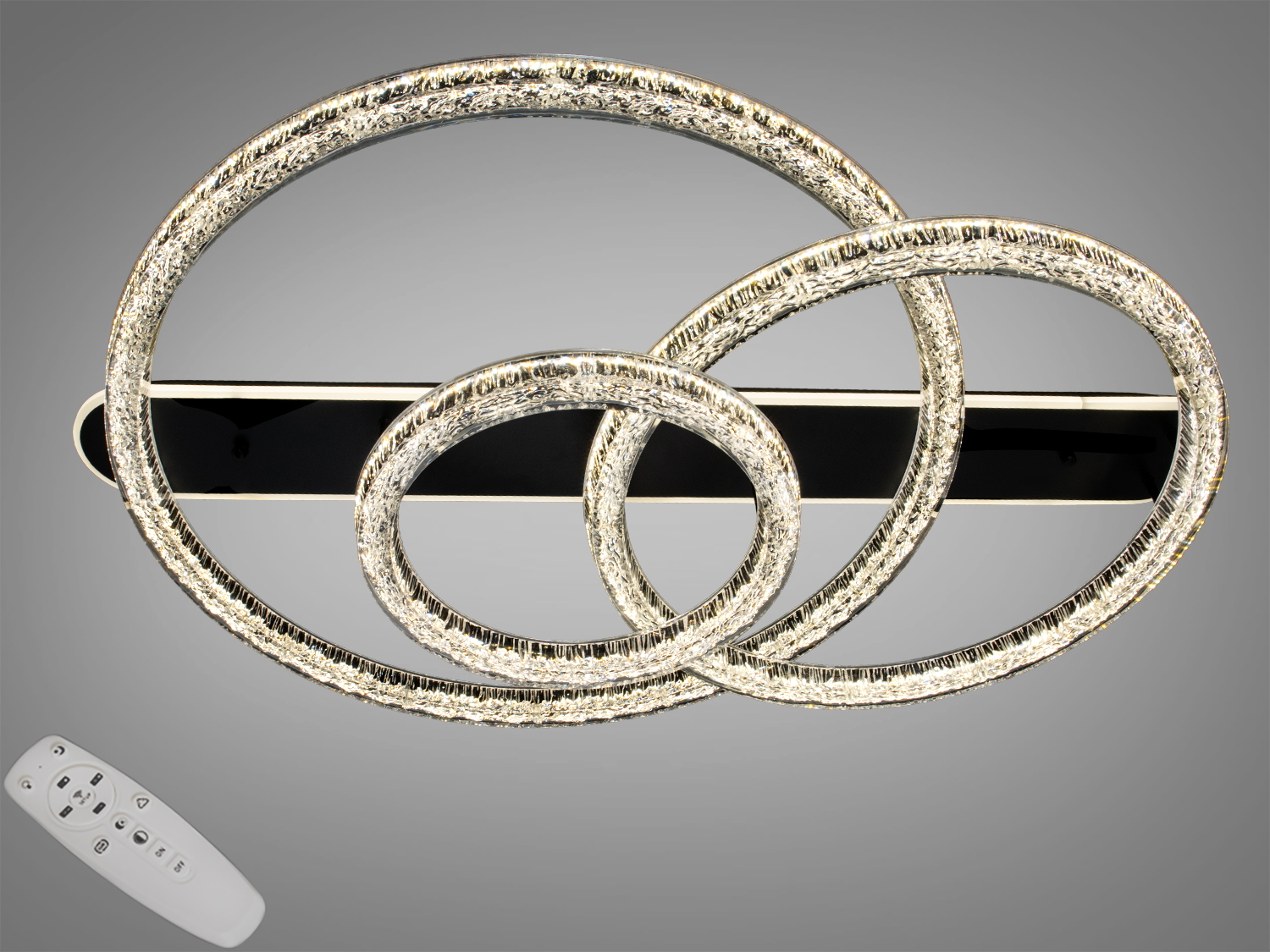 Світлодіодна люстра з трьома кільцями у чорному кольорі стане стильним акцентом у сучасному інтер'єрі. Вона створює затишну атмосферу та дозволяє налаштовувати освітлення залежно від ваших потреб. З потужністю близько 165 Вт, ця модель підходить для освітлення площі до 28 м².