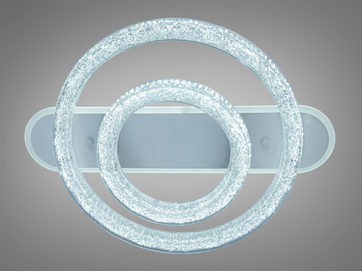 Люстра виконана в елегантному білому кольорі, що дозволяє їй легко вписатися в будь-який інтер'єр. Два світлових модулі у формі кілець створюють м'яке та приємне світло, а дистанційне керування додає додатковий комфорт у використанні, дозволяючи регулювати яскравість та перемикати режими освітлення.