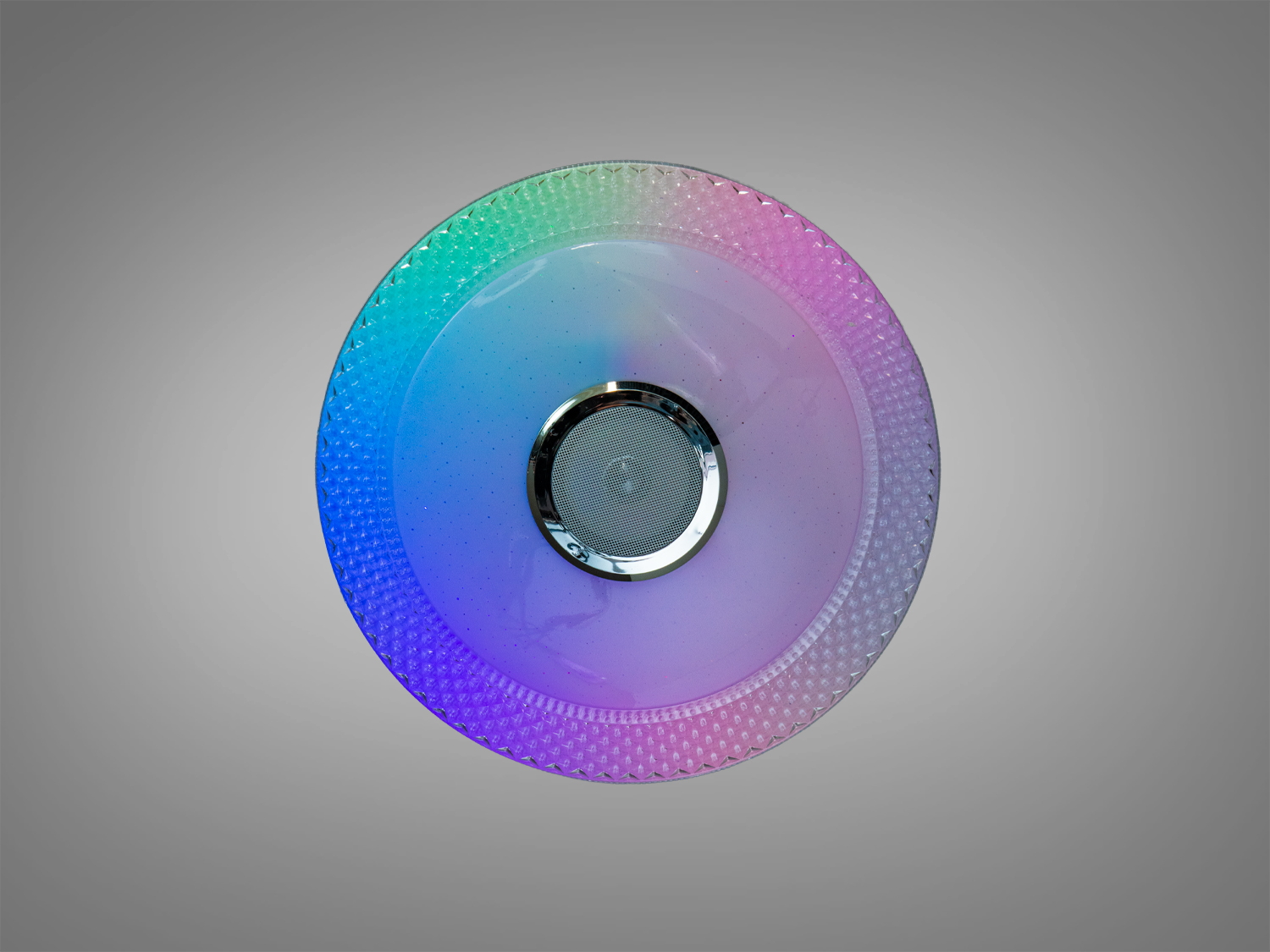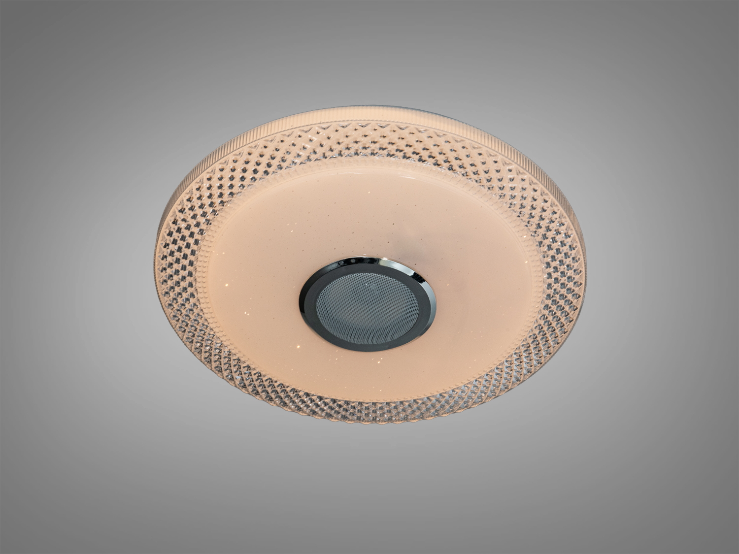 Білий стельовий світильник зі смарт‑керуванням поєднує освітлення та музику в одному корпусі. Кругла форма з прозорим візерунком по краю доречно підкреслює сучасні інтер′єри. Модель передбачає керування через додаток i‑Link або пульт ДУ: змінюйте колір, теплоту/холодність та яскравість світла, вмикайте RGB‑підсвітку під музику та формуйте потрібну атмосферу для відпочинку чи роботи. Потужність близько 70 Вт зазвичай достатня для рівномірного освітлення приміщень площею приблизно до 12 м².