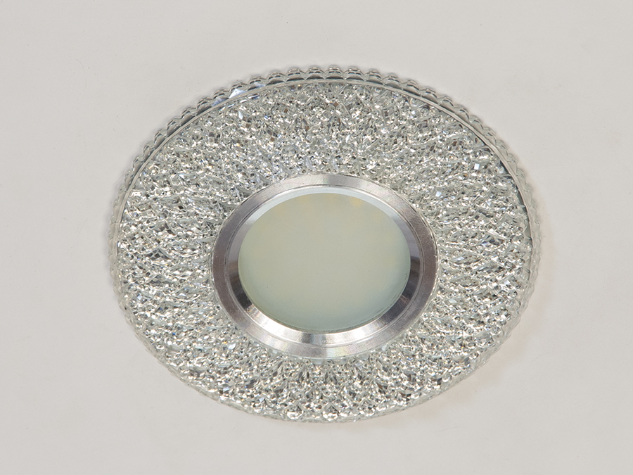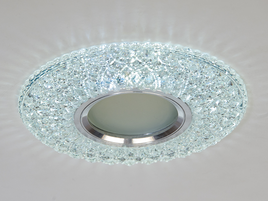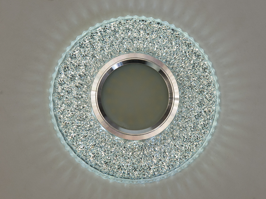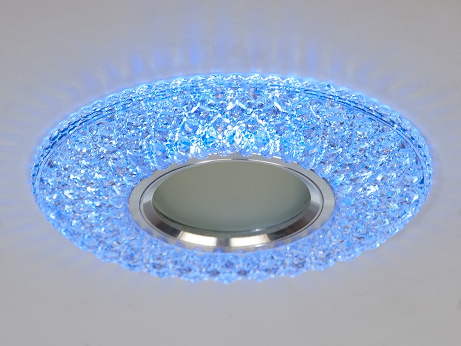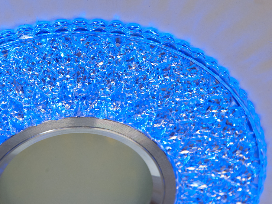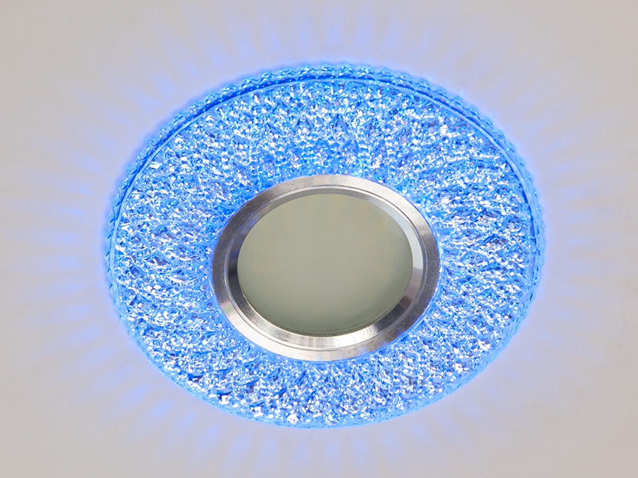 Світильник точковий 7760WH+BL — рішення для підвісних стель. Оснащений кольоровим LED підсвічуванням потужністю 3 Вт, яке дозволяє перемикати кольори між холодним білим та синім, створюючи унікальну атмосферу у вашому інтер'єрі.